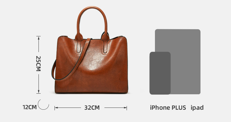 Factory OEM PU Oil wax leather handbag for women tote shopping bag big capacity shoulder bag